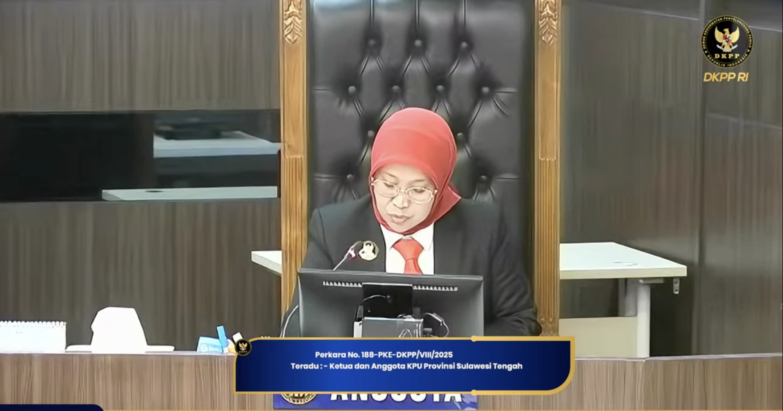 Dewan Kehormatan Penyelenggara Pemilu (DKPP RI) pada Senin, 1 Desember 2025, membacakan putusan perkara 188-PKE-DKPP/VII/2025 terkait dugaan pelanggaran kode etik oleh tiga komisioner Komisi Pemilihan Umum (KPU Provinsi Sulawesi Tengah). Putusan tersebut dibacakan langsung oleh Ketua DKPP RI, Heddy Lugito. Perkara ini diadukan oleh Agus Bakri dan Rano Karno yang melaporkan Ketua KPU Sulawesi Tengah, Risvirenol, serta dua anggotanya, Christian A. Oruwo dan Darmiati, masing-masing sebagai Teradu I hingga III. Ketiganya dijatuhi sanksi teguran keras terakhir.
